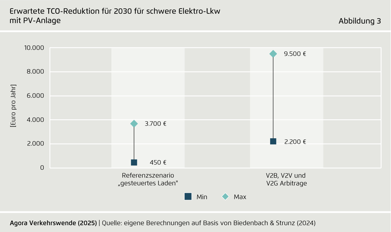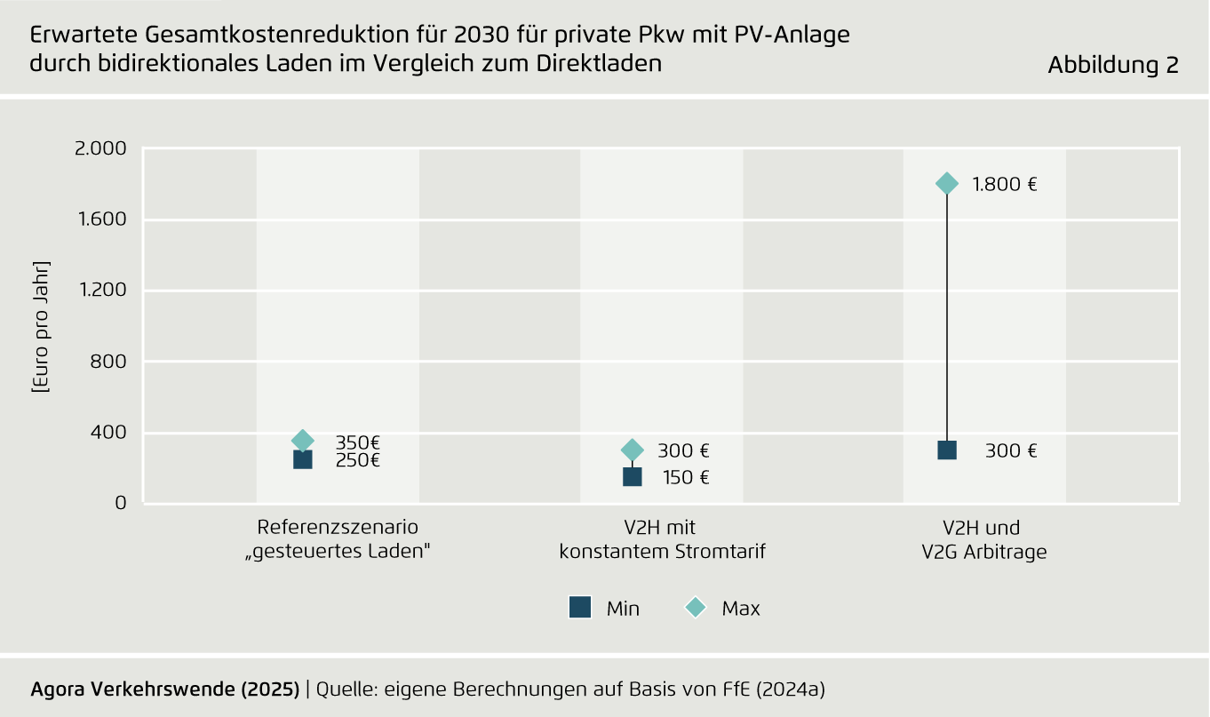 In Kombination mit der Eigenversorgung (Vehicle-to-Home/Building) sind zusätzliche Einsparungen möglich.